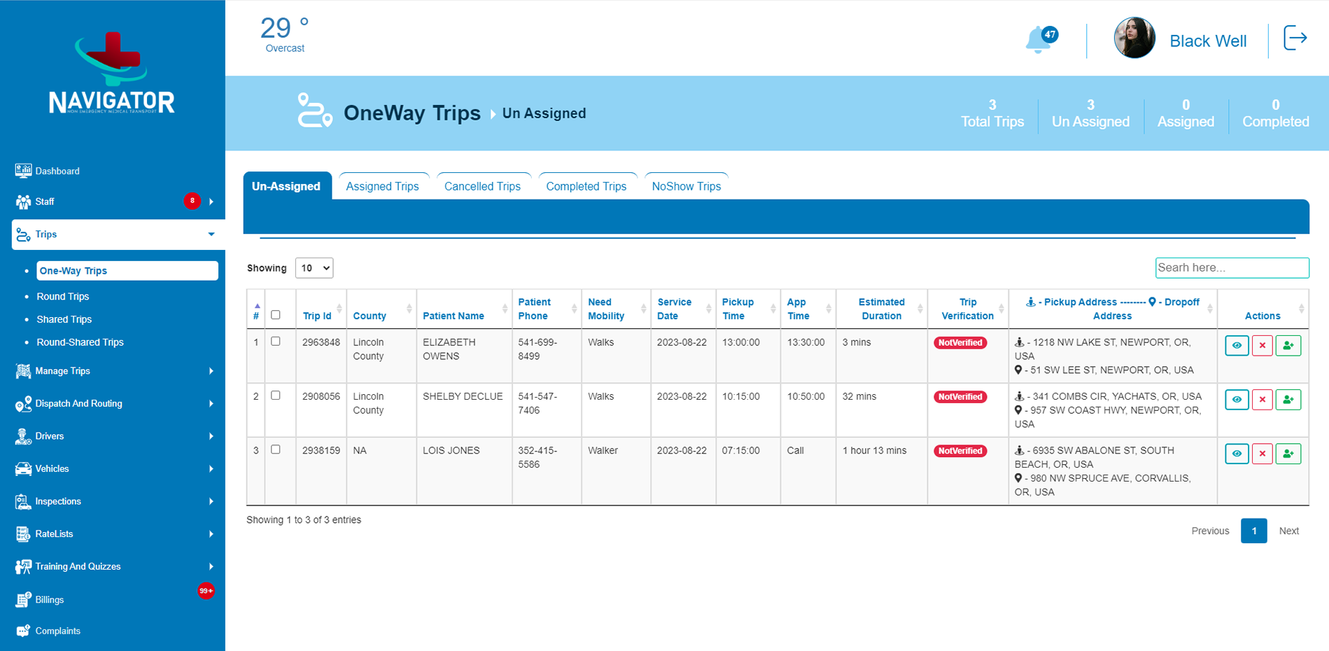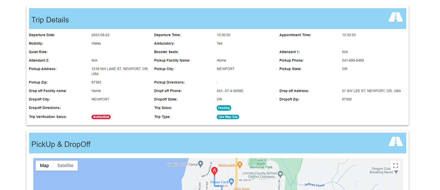 Detailed Tracking: To check specific trip details and live driver tracking, select the desired trip, and review all trip-related information.